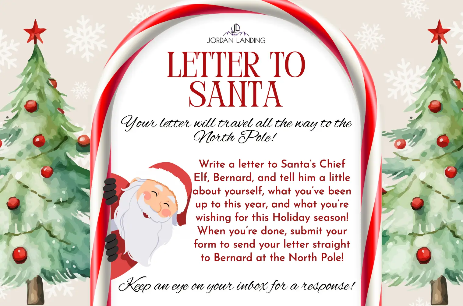 Before your visit with Santa, share your Christmas wishes with his Chief Elf, Bernard! Tell him about yourself, what youâve been up to this year, and whatâs on your wish list. Once your letter reaches the North Pole, keep an eye on your inbox because Bernard might just send a sprinkle of North Pole magic your way! â¨