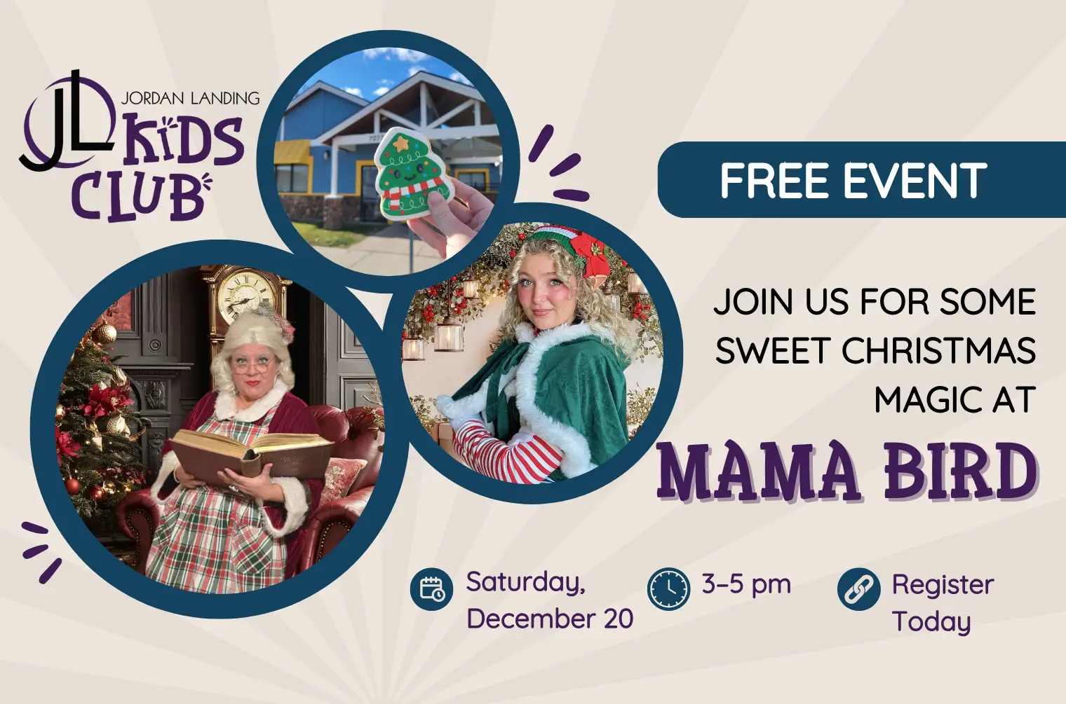 Get ready to sprinkle some Christmas magic! Join us for a festive afternoon of creativity, treats, and holiday cheer at Jordan Landingās December Kids Club on Saturday, Dec. 20, from 3ā5 pm at Mama Bird.